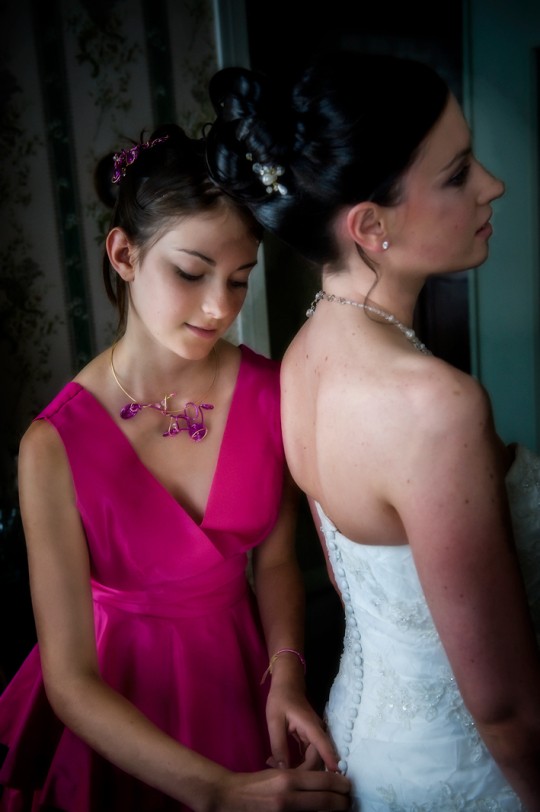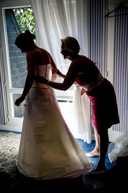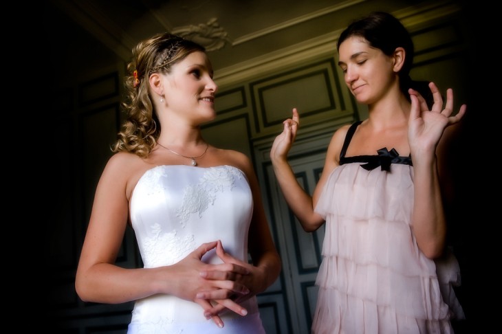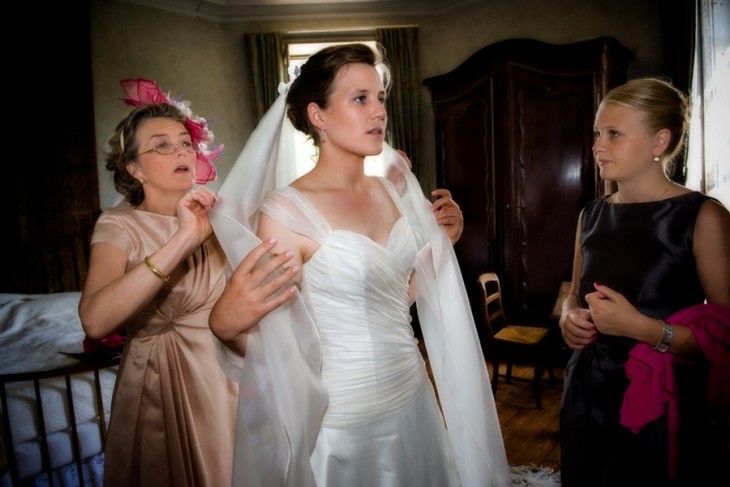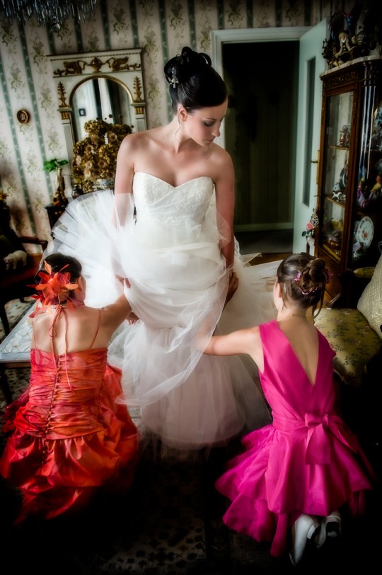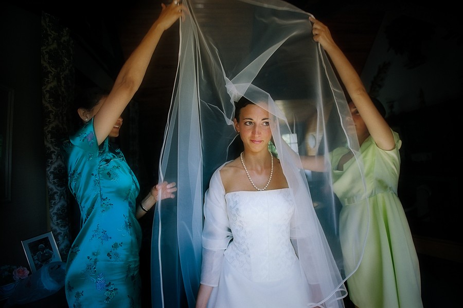 Vous aurez sans doute à commencer votre reportage chez le coiffeur de la mariée, à son domicile ou encore mieux celui des parents. Vous ne pourrez être dans deux endroit à la fois, c’est le jour de la mariée, donc priorité, mais sans oublier le marié, à prendre dans d’autres circonstances, à vous d’équilibrer les images, également pour les deux familles, vous êtes libre d’opérer comme bon vous semble, vous devez avoir l'oeil partout, seul compte le résultat. Au domicile des parents, toute la famille préoccupée par les derniers préparatifs ne vous verra qu’à peine et c’est très bien, vous pourrez saisir toute l’effervescence, l’intensité avec des situations souvent cocasses, sans oublier les détails, bouquet, alliances...