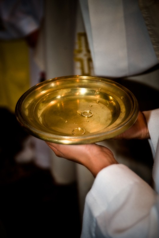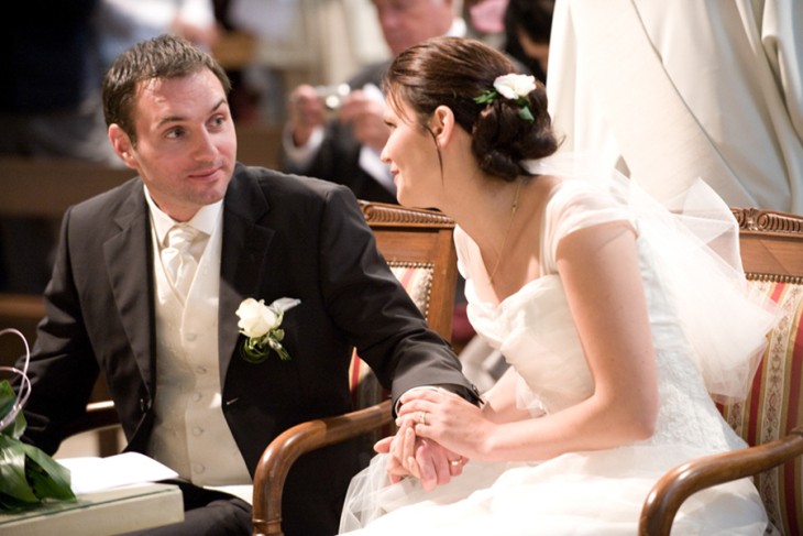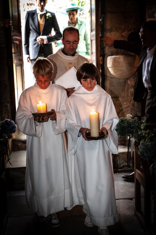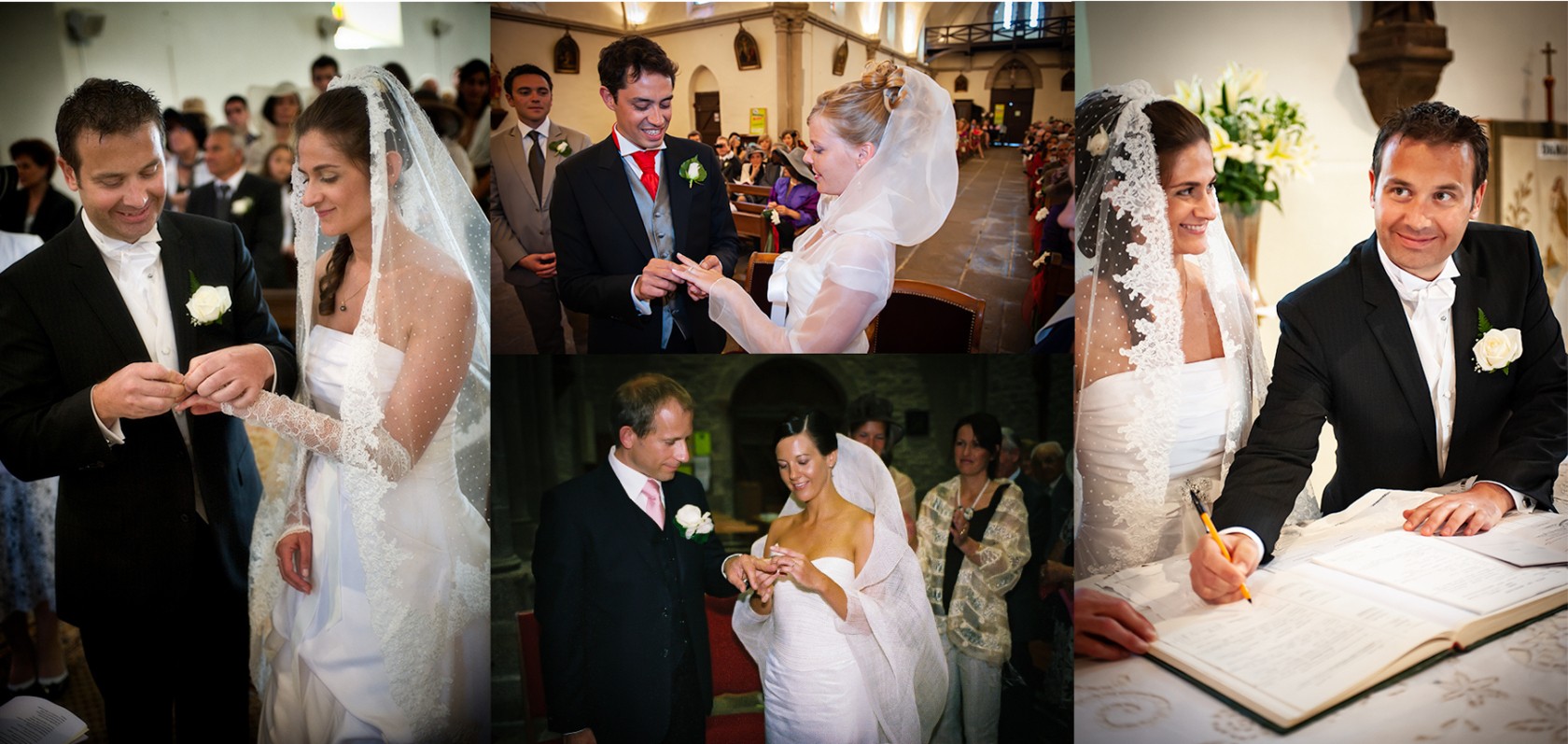 Un instant de répit jusqu’au passage des alliances, profitez en pour monter discrètement dans les tribunes et faire des vues panoramiques de toute l’assemblée. N’oubliez pas les différents intervenants, l’organiste, la cousine de l’oncle qui dirige la chorale et les enfants se précipitant pour la quête … certainement quelque chose d’inattendu va arriver...Même processus pour les signatures des registres, n’oubliez personne, triplez systématiquement toutes les prises de vue., les yeux fermés et autres grimaces ne peuvent exister. La sortie d’église, idem comme pour l’entrée. Sur le parvis dirigez et placez les familles harmonieusement sans oubliez les grands parents. Vous pourrez poursuivre ces photos durant le cocktail dans un cadre moins formel. N’oubliez pas le cortège, là aussi vous devez être présent dès le départ, sur le parcours en précédent la voiture des mariés, au détour d’un virage, en filé au travers des champs des bois, sans oublier l'arrivée.