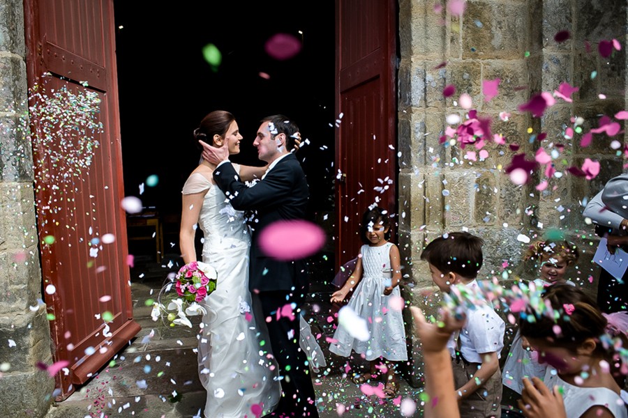 Ensuite et c’est bien là que pour le photographe le stress commence et que la photographie de mariage devient un véritable sport, dites vous bien que si le soir vous n’êtes pas comme l’on dit sur les genoux et le lendemain matin avec des douleurs aux articulations c’est que vous êtes passé à côté d'un bon nombre de situation, donc d’images importantes. Vous devrez très vite quitter ce cocon familiale pour vous précipiter à la mairie ou le parvis de l’église. Portrait des premiers arrivants mais surtout du marié et de sa famille, des amis et des enfants. Là aussi des situations uniques intéressantes à saisir même s’il pleut avec du vent, les parapluies s’envolent... c’est du vrai reportage, çà pourrait être du cinéma mais sans répétition, sans filet, on ne recommencera rien! ... c’est une journée unique ! Les cloches sonnent, 15 heures à l’horloge du clocher que vous immortaliserez.